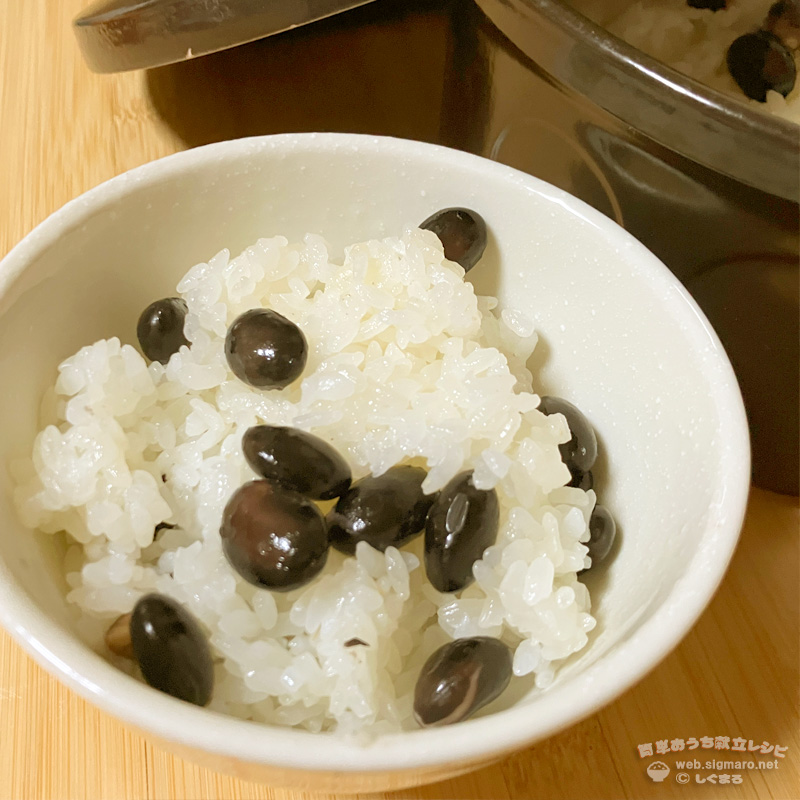 炊き上がったら、蒸し黒豆をを混ぜてそのまま蒸らしてできあがりです。
